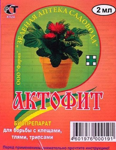 "Актофит" - препарат биологического происхождения, предназначен для избавления декоративных растений и с/х культур от таких вредителей: тля, трипс, колорадский жук, капустная белянка и совка, клещи, растительноядные и прочие вредители. Используют как на закрытом, так и на открытом грунте.