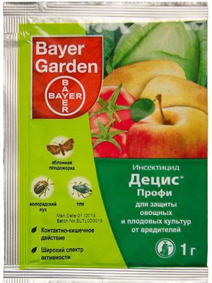 "Децис Профи" – контактно-кишечный инсектицид входит в группу синтетических перитроцидов. Применяется для борьбы с группой равнокрылых, чешуекрылых и жесткокрылых вредителей. Препарат приводит к необратимым изменениям в нервной системе вредителей, блокируя нервную проводимость. У препарата высокая селективность к энтомофагам. Действует препарат уже через час после применения. "Децис Профи" не фитотоксичен. Данных о возникновении резистентности нет. Препарат следует чередовать с другими, во избежания возникновения резистентности. |