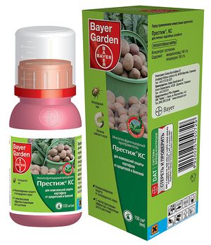 Для защиты картофеля от вредителей, препарат «Престиж» разбавляют с водой в пропорции 1 к 10-20, чего хватает приблизительно для опрыскивания 10 кг картофеля. Опрыскивать клубни необходимо равномерно. Чем раньше картофель будет посажен после обработки, тем лучше. Инсектицид защитит только посаженный клубень и появившуюся ботву, а в молодые клубни картофеля не попадет. Фунгицид, который содержится в протравителе «Престиж» , распадается в течение 40 дней после обработки, защищая в течение этого времени посадочный материал от заболеваний.
