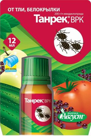 Предназначен инсектицид «Танрек» для уничтожения взрослых особей и личинок колорадского жука, тли, белокрылки и других сосущих вредителей на овощных и садовых культурах. Он впитывается в корни и листья растения.