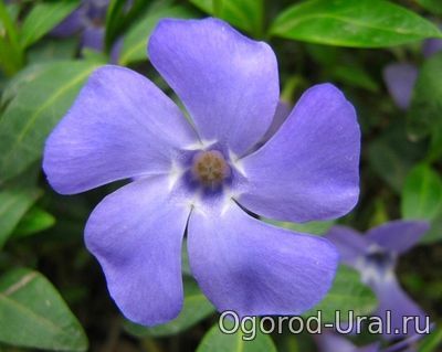 Барвинок начинает радовать молодой зеленью уже ранней весной, когда другие цветы в открытом грунте только пробуждаются от зимнего сна. В апреле кустики покрываются многочисленными цветками. | |
