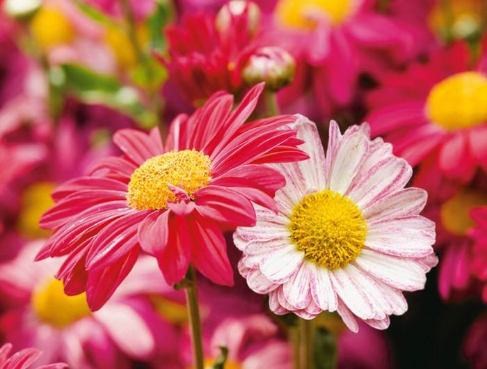 Пиретрум - многолетнее декоративное растение семейства астровых. Отличается длительным периодом цветения - зацветает в июне и продолжает активно цвести до начала октября. | |
