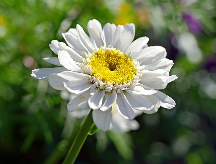 Ромашка садовая или нивяник представляет собой многолетнее травянистое растение высотой от 15 до 60 см. Цветы ромашки представляют собой полусферические соцветия-корзинки. | |