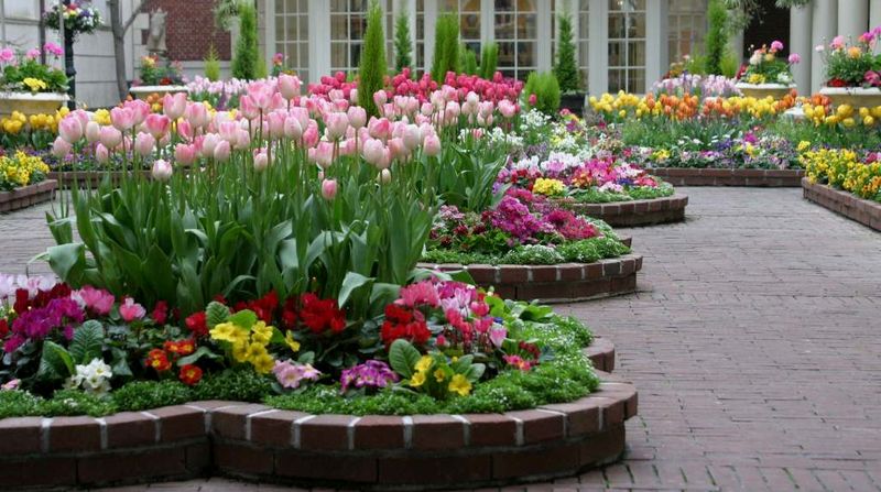 - Ограждение бордюров (с помощью цветов создается яркая окантовка).