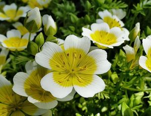 Отличается декоративным обильным цветением, которое длится в течение всего лета. Венчик цветка состоит из пяти лепестков, с весьма характерной окраской – ближе к серединке цветка лепестки окрашены в ярко желтый цвет, а по краям – в белый. Цветки лимнантеса диаметром около 2,5 см. Встречаются сорта с полностью желтыми или белыми цветками. Цветки приятно пахнут. Кустики лимнантуса высотой не более 20 см в ширину разрастаются на 40–45 см, образуя пышный цветочный ковер.Подробнее... |