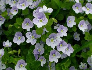 При оформлении клумб широко используется неприхотливый и вечнозелёный барвинок малый. Этот цветок, высотой около 40 см может расти, практически, без ухода. Окраска лепестков цветка может быть бледно-голубой, а может быть и тёмно-синей. Существуют виды с цветками лилового оттенка. Цветы не крупные, размер в диаметре составляет 3 см. Благодаря работе селекционеров появились сорта барвинка с белыми, красными и оттенками розового цветков. Подробнее... |