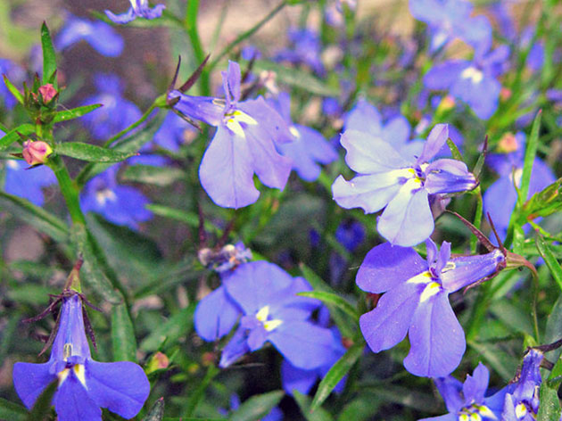 Лобелия в наших садах выращивается чаще как однолетнее растение, представляющее собой шаровидный компактный кустик 10-20 см высотой, хотя есть виды и сорта, достигающие в высоту полутора метров. Стебли у лобелии тонкие, ветвящиеся от самого основания, густо покрытые очередными цельными ланцетными листьями. Пазушные двугубые цветки на коротких цветоножках двух сантиметров в диаметре в зависимости от сорта бывают окрашены в белый, пурпурный, темно-синий, фиолетовый или голубой цвета. Цветение обычно начинается в июне и продолжается по сентябрь. Подробнее... |