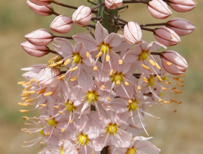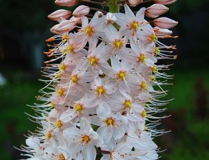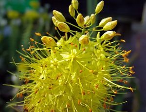 Эремурус (лат. Eremurus) или ширяш – травянистый многолетник подсемейства Асфоделовые семейства Ксанторреевые, который в настоящее время представлен более чем 40 видами, сортами и гибридами. Корень эремуруса похож на морскую звезду – дисковидное корнедонце, достигающее в диаметре 10-15 см, с мясистыми, скрученными корнями, веретенообразно или цилиндрически утолщенными и торчащими во все стороны. Листья чаще всего многочисленные, трехгранно-линейные, плоские, широкие или узкие, с нижней стороны килевидные. Безлистный, одиночный стебель выходит из прикорневой розетки и несет крупную, вытянутую цветочную кисть длиной до 1 м с белыми, пыльно-красными, желтыми, розовыми или бурыми колокольчатыми цветками, расположенными на цветоносе по спирали.
