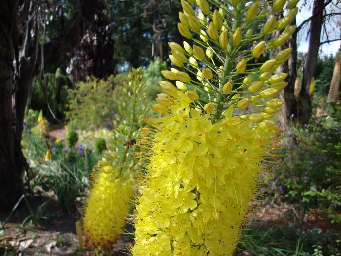 Цветение начинается с нижней части кисти, каждый цветок находится в раскрытом состоянии не более суток. В зависимости от вида и сорта растения цветение эремуруса может продолжаться от 10 до 40 дней. Плод – растрескивающаяся при созревании перепончатая или полуодревесневшая, почти шаровидная трехгнездная коробочка, иногда гладкая, иногда морщинистая. Трехгранные семена эремуруса тоже морщинистые, с прозрачным крылом. Растение является прекрасным медоносом.