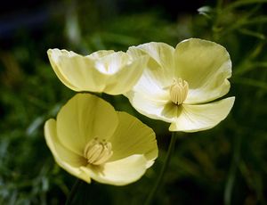 Растение ростом тоже всего до 15 см в высоту. Трижды рассеченные тонкие листья сизо-зеленого цвета, покрытые восковым налетом, собраны в розетку, над которой возвышается пышная шапка ярких желтых чашевидных цветков диаметром до 3 см. Цветет этот вид с июня и почти до зимы.