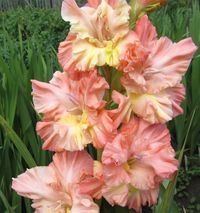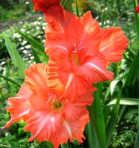 Лососевые и оранжевые гладиолусы