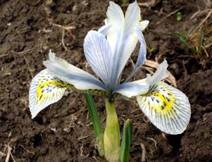 Это ещё один вид из предгорий Закавказья, отличается замедленным появлением листьев – к моменту цветения они едва показываются из-под земли. Цветы голубые, 6 см в диаметре, с коротким широким крыльчатым ноготком на внешних долях околоцветника.