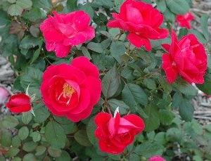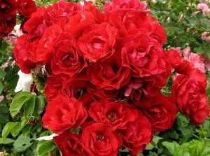 Очень красивый сорт канадских парковых роз "Аделаид Худлесс". Вначале цветения махровые бутоны приобретают тёмно-розовую окраску, а затем становятся красными. Метровая высота аккуратного, компактного куста позволяет создавать очень красивые клумбы.