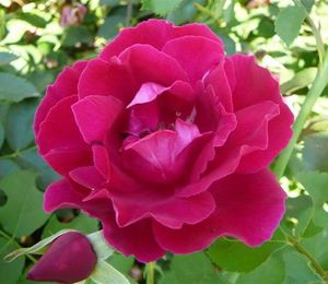 Создан сорт в 1971 году. Ароматные цветки малинового оттенка возвышаются на побегах, длиной около 1,3 м. Пышные бутоны (около 25 лепестков) очень красиво смотрятся. Цветут продолжительно, целое лето и осень.