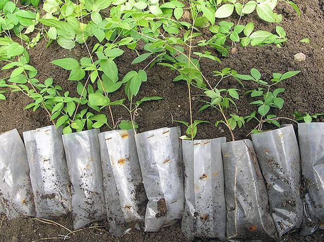 Когда появятся всходы, обеспечьте им достаточное освещение, но берегите от прямых лучей солнца. При появлении у сеянцев первых настоящие листочков их пикируют в отдельные горшочки или плошки и подращивают в комнатных условиях до тех пор, пока не минуют последние заморозки. Затем саженцы пересаживают на тенистый участок, в легкую почву, соблюдая между ними интервал 15-20 см. Время от времени прищипывайте растения, чтобы они наращивали корневую массу и сильнее ветвились. Осенью укройте ваши саженцы, а весной снова пересадите в траншею глубиной 5-7 см, соблюдая между саженцами расстояние в полметра. Укоротите побеги, оставив на них несколько узлов. Через 2-3 года, когда у саженцев появятся как минимум три упругих корешка 10-15 см длиной, они будут готовы к пересадке на постоянное место.