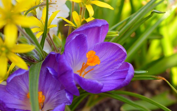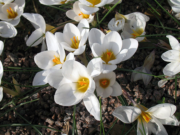 Крокусы уход в открытом грунтеКак ухаживать за крокусами в садуУход за крокусами прост. Поливать их нужно только, если зима была бесснежной, а весна без дождей. От количества получаемой влаги зависит высота крокусов, однако в целом они достаточно засухоустойчивы. Почву на участке нужно рыхлить и освобождать от сорной травы. Во время активного роста крокусы нуждаются в подкормках, причем использование свежей органики недопустимо. А вот минеральные удобрения крокусы любят, однако в большей степени им требуются фосфор и калий, а вот избыток азотных удобрений в сырую погоду может спровоцировать грибковые заболевания. Первый раз комплексные минеральные удобрения из расчета 30-40 г на м² вносят ранней весной по снегу, вторая подкормка, с сокращенной дозой азота, осуществляется во время цветения. Пересадка крокусовКаждый год луковицы крокусов выкапывать на зиму необязательно, но один раз в три-четыре года в середине лета, когда у крокусов период покоя, это делать необходимо, поскольку за такой долгий срок материнская клубнелуковица сильно увеличивается за счет множества дочерних луковичек, которых ежегодно, в зависимости от вида и сорта, прирастает от одной до десяти. Луковички начинают мешать друг другу, и от этого цветки крокуса мельчают. Когда выкапывать крокусыРассаживают луковицы один раз в три-пять лет, но если вам нужен посадочный материал, выкапывать, делить и пересаживать луковицы крокусов можно и чаще. Луковицы осеннецветущих крокусов, опять-таки в зависимости от вида и сорта, выкапывают с июня по август, луковицы весеннецветущих – с июля по сентябрь. Извлеченные из земли луковицы подсушивают, удаляют с них дефектные чешуи, омертвевшие корни, отбраковывают больные луковицы, а механические повреждения обрабатывают толченым углем или золой. До высадки в грунт их хранят в прохладном и сухом месте. Крокусы уход после цветенияКогда цветы увянут, цветоносы можно срезать, но зеленые кустики крокусов еще долго будут украшать ваш сад, пока листья не пожелтеют и не увянут. Как только листья засохнут естественным образом, луковицы весеннецветущих сортов можно выкопать и просушить, чтобы опять посадить в сентябре. Однако, как уже упоминалось, луковицы крокусов каждый год выкапывать не обязательно. Если вы посадили их не раньше, чем три года назад, и между кустиками крокусов еще видна почва, просто замульчируйте участок с крокусами на зиму толстым слоем торфа или сухих листьев.