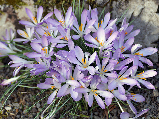 КРОКУС БАНАТСКИЙ (Crocus banaticus) растет в Карпатах, Румынии и на Балканах. Название получил в честь исторической области Банат, расположенной в Румынии. У него линейные серебристо-серые листья до 15 см длиной. Изящные светло-сиреневые цветки с желтыми пыльниками возвышаются над поверхностью грунта на 12-14 см. Наружные листочки околоцветника длиной до 4,5 см, внутренние уже и в два раза короче. Культивируется с 1629 года.