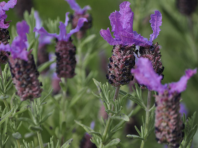 Или лаванда широколистная (Lavandula latifolia) родом с Юго-Запада Европы. Она отличается сильным ароматом и красотой цветков разных оттенков фиолетового, розового, сиреневого, зеленого, бордового и белого цветов. Цветение у лаванды французской начинается раньше, чем у других видов растения – в апреле или мае – и продолжается до июля, но в конце лета широколистная лаванда может зацвести опять. Лаванда французская не так холодостойка, как английская, поэтому выращивают ее преимущественно в теплых районах. Наиболее популярной разновидностью этого вида является Lavandula stoechas pedunculata, или «бабочка» (Papillon), с цветками оригинальной формы. Из сортов лаванды широколистной наиболее известны: