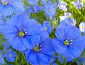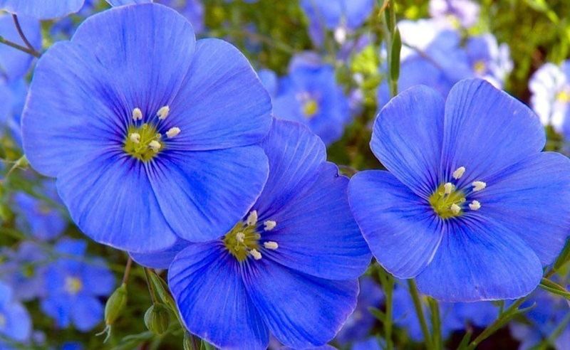 Декоративные виды льна используют для украшения садовых участков. Если у обычного полевого льна цветки небесно-голубого цвета, то декоративные виды пестрят белыми, красными и даже желтыми цветами. Для декоративного цветоводства выведено около 25 видов льна, но широкое распространение получили только два из них – лен крупноцветковый и лен обыкновенный. Это однолетние растения.