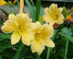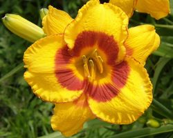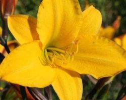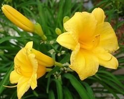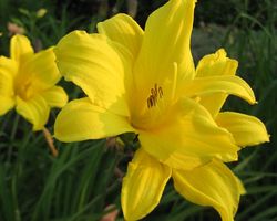 Лилейник «Желтый» немного ниже, чем предыдущий вид, высота его цветоноса не превышает 70 см. Бутоны культуры имеют насыщенно-желтый оттенок и составляют около 8 см в диаметре. Зацветает лилейник «Желтый» на 45-55 день после отрастания цветоноса. Период бутонизации начинается в конце мая или в первой декаде июня и длится около 2-2,5 недель.