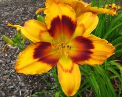 Высота растения - 55 см, цветок желтый с оранжевым пятном и желтым горлом. Каждый цветок живет один день, но множество цветков на взрослом растении обеспечивают длительное цветение. В пасмурную прохладную погоду цветки живут до шести дней. Общая продолжительность цветения куста 25 и более дней.