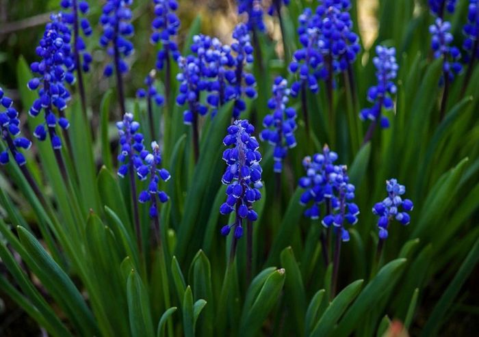 Или остроконечная, или метельчатая. Это самый морозостойкий вид, по форме роста считается отличным почвопокровным растением. Корневище, мочковатые корни поверхностные. Листья извилистые, превышают высоту цветоносов, достигая 30- 40 см. Узкие листья похожи на злаковые либо перья лука. Цветоносы белые, серо – фиолетовые, более короткие, окрас – менее яркий, чем у сортов вида мускари, листья на их бледном фоне кажутся ярче и крупнее, могут иметь серебристый оттенок. Соцветия сорта Silver Dragon лавандово-синие.