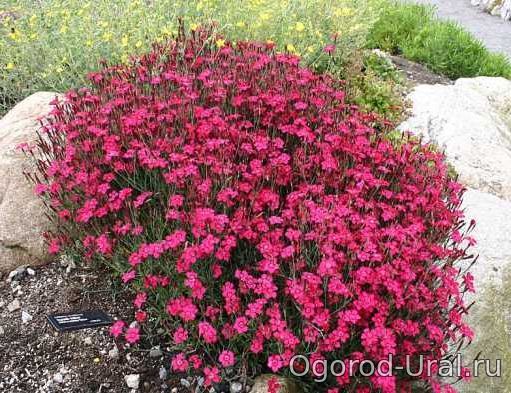 Хоть и является двулетником, но благодаря отличному осеннему самосеву не нуждается в ежегодной посадке. Это морозоустойчивое растение с прямыми узловатыми стеблями высотой от 0,35 м до 0,75 м и узкими ланцетовидными листьями зеленого, сине-зеленого или красновато-зеленого цвета. Ароматные, многочисленные цветки гвоздики простого или махрового строения, окрашенные в различные оттенки белого, розового, кремового или красного цветов, образуют щитковидные соцветия, достигающие 12 см в поперечнике. Период цветения гвоздики начинается в конце июня и длится более месяца. Подробнее... |