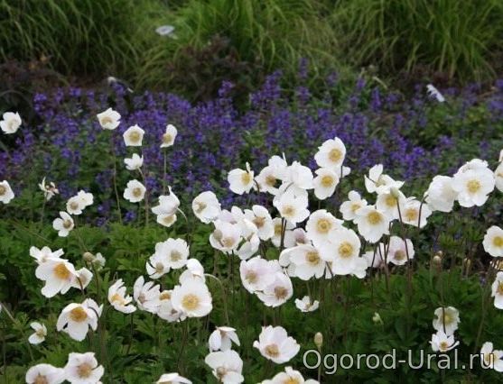 Еще одним популярным низкорослым цветком для сада является анемона. Имеет небольшие цветочки белого цвета. Растет на кустах, поэтому легко в пересадке. Совершенно неприхотливый цветок, который часто растет сам по себе. Подробнее... |