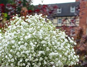 Объёмный, шарообразный куст со множеством простых или махровых, очень маленьких «гвоздик», как правило, белого цвета. Максимальная декоративность достигается на третий год после посадки. Цветёт с середины июня по конец августа. Роскошно смотрится в букетах сухоцветов. Листьев на растении почти нет. Ветвистые стебли снизу украшены узкими серо-зелеными листочками. Они небольшие, снизу мохнатые. Сверху ветвистые стебли покрыты огромным количеством цветов, простых или махровых. Размер каждого достигает 8 мм. Цветки бывают белыми и розовыми различной интенсивности. Они собраны в соцветия-метелки. Цвет бутона может измениться после распускания цветка. |