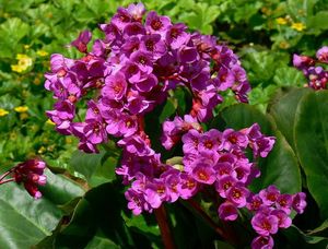 Или "Монгольский чай". Вечнозелёное садовое растение с листьями «хамелеон» — осенью они отливают красным цветом, иногда полностью становясь багряного оттенка. Самостоятельно ползёт по участку за счёт прироста корневища. Через несколько недель после схода снега, растение зацветает на 30 дней розово-сиреневыми, прямостоящими, сложными соцветиями из маленьких цветочков. Ценится не только за декоративный вид, но и за лекарственные свойства корневищ и листьев. |