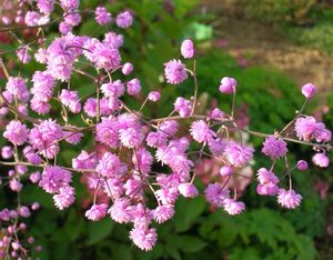В июле, когда василистники зацветают, создается впечатление, что сад парит в облаках. Эти неприхотливые цветы способны расти одинаково успешно на солнце и в тени, однако идеальной для них будет полутень. Они медленно разрастаются, не любят пересадки и близкое соседство с другими растениями. Садоводов растение привлекает своей стойкостью к морозам, неприхотливостью в посадке и уходе. Василистник отличается прямостоящими стеблями без листьев, ползучими корнями и треугольными ажурными прикорневыми листиками. Высота куста василистника может достигать двух метров. Его многочисленные мелкие цветки собраны в кистевидные, щитковидные или метельчатые соцветия. Они могут быть белого, сиреневого, кремового, желтого, зеленоватого или розового окраса. |