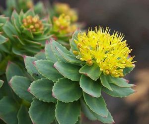 Или "Золотой корень" – это многолетнее лекарственное травянистое растение высотой до 40 см. Корневище толстое, с тонкими придаточными корнями, буроватое, цвета бронзы или старинной позолоты со своеобразным перламутровым блеском. От этой окраски и происходит народное название "золотой корень". Цветки однополые, чашелистники желто-зеленые, лепестки желтые. В мужских цветках тычинки длиннее лепестков. Плоды - прямостоячие зеленоватые листовки. Цветет родиола розовая в июне - июле, плоды созревают в июле - августе. Родиола розовая - требовательное к влаге растение, нуждается в обильном, но проточном увлажнении, и менее требовательно к теплу и свету. |
