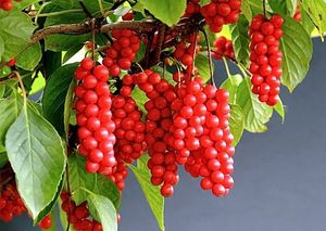 Это вьющееся растение замечательно подходит для сада. Китайский лимонник представляет собой многолетнюю лиану, черенки которой окрашены в красноватый цвет. Листья растения большие, глянцевые. Во время цветения куст украшен белыми цветочками и источает приятный аромат лимона. Осенью листья растения становятся желтыми. Плодоносит лимонник красные кисловатые ягода, которые образуют гроздья. Ягоды китайского лимонника обладают лечебным действием. |