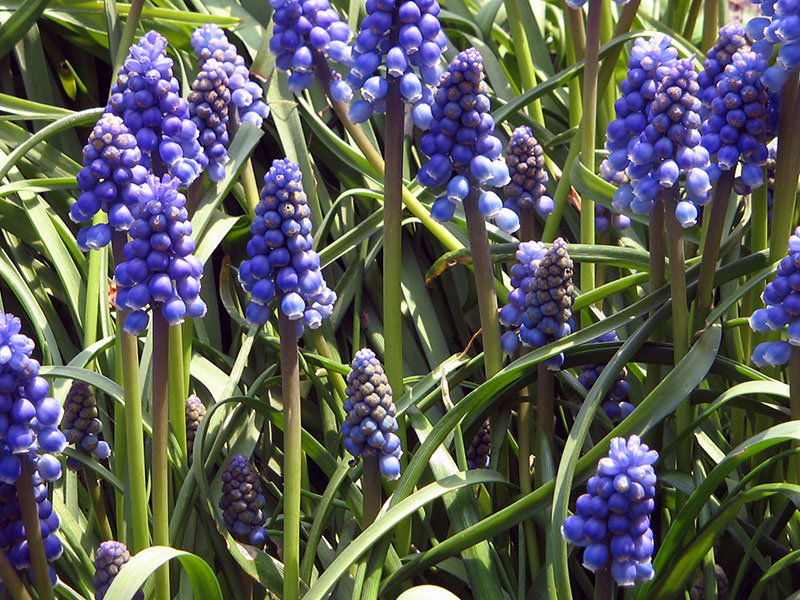 • Мускари махровый Блю Спайк – исключительно красивый за счет многоцветковости (до 170 цветков в гроздевидном соцветии), неприхотлив, можно использовать для срезки.
