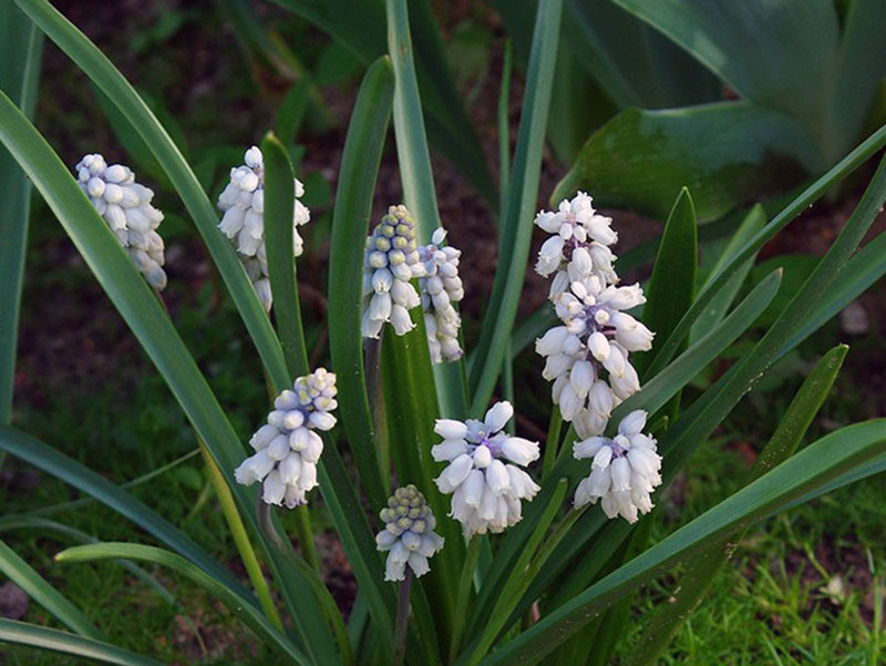 • var. album – мускари белый, грозди, как будто из жемчужинок.