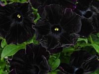 Это растение, поражающее своей красотой. Этот сорт выбрасывает невероятно эффектные крупные соцветия. Лепестки в бутонах имеют бархатистую поверхность и окрашены в глубокий черный цвет. Диаметр цветка может достигать 8-ми см, и они густо покрывают мощный куст, высота которого составляет около 35 см.