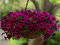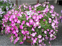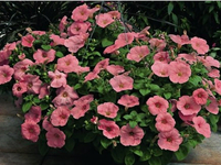Очень красивый гибрид каскадной петунии с обильным цветением и яркими цветами. Часто используется как почвопокровное растение при выращивании на клумбах и газонах.