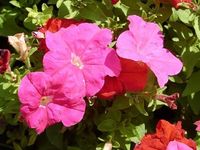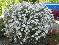 Это японская ампельная петуния. Длительность светового дня для этого сорта не имеет значения. Выращивание не представляет собой особых сложности. Цветки имеют некрупные размеры. Растение образует плети длиной до 1 метра. Прекрасно смотрится на балконах и в подвесных вазах. Иногда выращивают и в открытом грунте. Для одного растения требуется брать около 8 литров грунта. Для того, чтобы цветение было обильным, необходимы регулярные подкормки растения и удаление увядших побегов. Расцветки разнообразны: белые, синие, розовые и другие.
