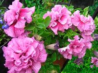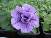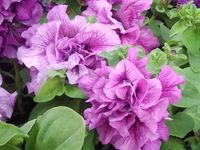 Новый гибридный сорт. Красота махровой петунии нежно-лавандового цвета очень экзотична, имеет сходство с розой. Этот сорт петуний имеет необычайный аромат. Куст очень компактный, густо усеянный цветами.