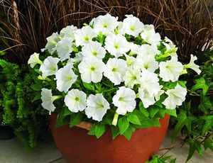 Это гибрид ампельной петунии. Стебли данного сорта достигают 80 см в длину и на них в период цветения появляются роскошные белоснежно-пенные цветки, которые к тому же дарят невероятно легкий аромат.