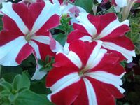 Гибридная крупноцветковая петуния. Растение, компактное, с хорошей ветвистостью. Стебли длиной 25-40 см украшают цветки диаметром 10-13 см, ароматные, красного цвета. Обильное, длительное цветение, неприхотливость позволяют использовать во всех видах цветочного озеленения: для оформления бордюров, украшения балконов, при создании композиций на клумбах, в подвесных емкостях. Прекрасно соседствует с бархатцами, вербеной, пеларгонией, цинерарией, лобелией.