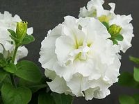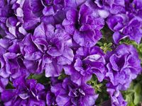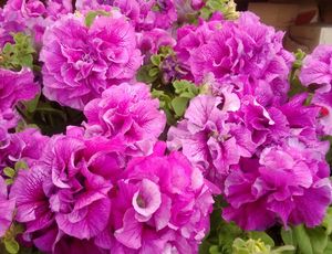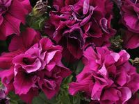 Переоценить достоинства махровой петунии невозможно. Гофрированные, изрезанные и пышные лепестки, невысокие и компактные кустики являются визитной карточкой этого вида петуний. Трудно отыскать ещё одно такое же неприхотливое и, одновременно, чарующе прекрасное растение. Стебли махровой петунии достигают 30 см в длину, цветет она с первых дней лета до заморозков. Спектр окраски цветов петунии махровой варьируется от кипенно-белой до тёмно-фиолетовой. На сегодняшний день существует огромная масса красивейших гибридных сортов махровой петунии. Лучшие из них представлены ниже: