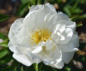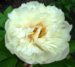 Куст с белыми махровыми цветами диаметром около 16 см вырастает высотой до 1 м. Может соперничать с другими садовыми растениями в красоте и долговечности. Сорт позднего цветения. Внешние лепестки сорта белые, а корона ближе к молочному цвету. Такой неоднородный окрас делает пион оригинальным и привлекательным. Сорт устойчив к срезке, тени и морозам до -20°C. У "Дюшес де Немур" прекрасный аромат ландыша. Сорт устойчив к болезням, воздействию серой гнили не подвержен. Очень любит яркий солнечный свет. Срок его жизни – около 10 лет. |