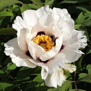 Суперморозостойкий сорт пионов Рока, одной из разновидностей древовидных пионов. На свое родине в Китае эти пионы способны выдерживать морозы ниже –30°C. Это очень красивый кустарник с необычной формой листьев и любопытной окраской цветков: белоснежные лепестки у основания темно-фиолетовые. Кустарник невысокий, в среднем - 90 см. Цветет в июне. |