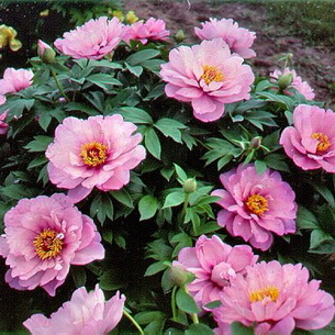 Простой или японской формы пион диаметром 15 см. Сиренево-розовый. Стаминодии жёлтые. Высота куста 80 см. Запах слабый. Ранне-средний срок цветения. |