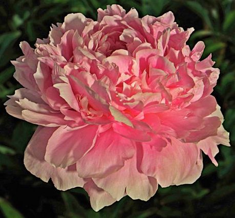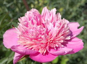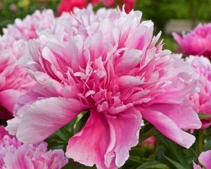Махровый розовидный пион. Розовый, с широким кремовым поясом. Диаметр цветка 15 см. Высота куста 80 см. Запах слабый. Поздний срок цветения. |