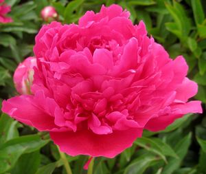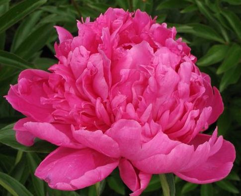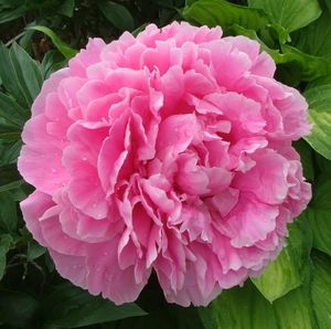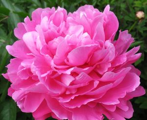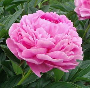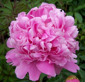 Махровый розовидный пион, симметричный, хорошо заполненный, диаметром 16 см, ярко-розовый. Высота куста 90 см. Запах слабый. Средне-поздний срок цветения. |