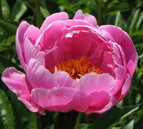 Махровый розовидный пион. Длинные, крупные лепестки окружают чашей короткие в центре. Ярко-розовый. Стебли прочные. Диаметр цветка 20 см. Высота куста 80 см. Запах слабый. Средний срок цветения. |