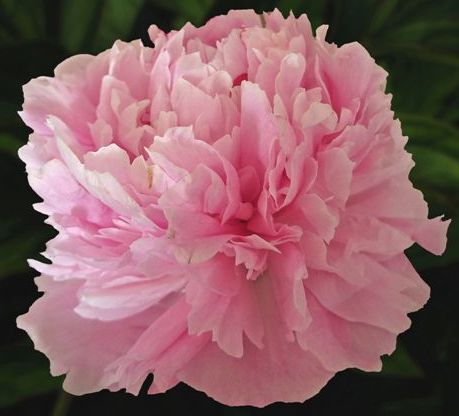 Махровый бомбовидный, плотно заполненный пион нежного розового цвета. Диаметр цветка 16 см. Стебли толстые, прочные. Высота куста 80 см. Ароматный очаровательный сорт среднего срока цветения. |