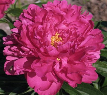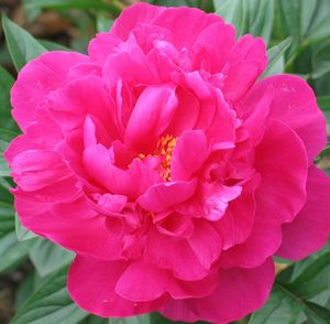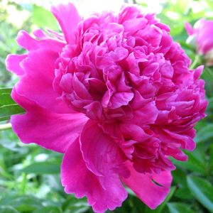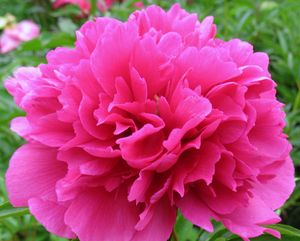 Этот сорт пиона цветёт крупными, пышными цветами ярко-малинового цвета. Цветы в диаметре достигают 15 сантиметров, источают приятный тонкий аромат. Куст небольшой, врастает до 70 сантиметров в высоту. Листва приятного зелёного цвета. |